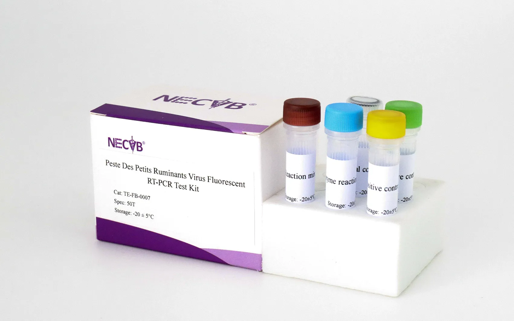 This kit is based on real-time reverse transcription polymerase chain reaction (RT-PCR) technology, using specific primers and fluorescent probes targeting conserved regions of the PPRV genome. Viral RNA is reverse-transcribed into cDNA and amplified in a closed system, with fluorescence signals monitored in real time for accurate detection.